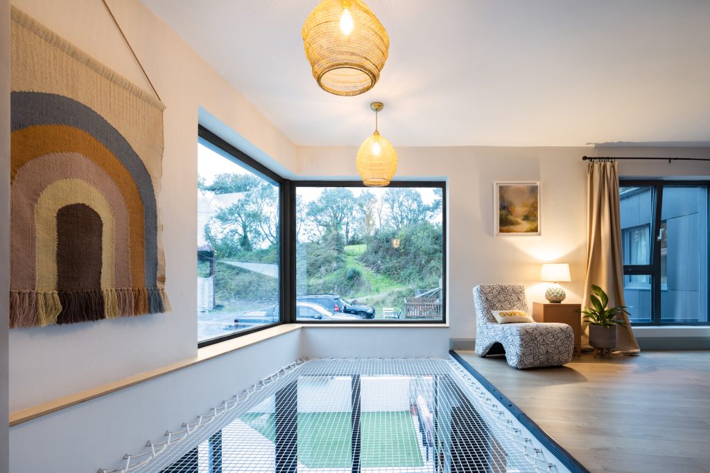 Lighting, particularly natural light, is a transformative element in wellness spaces. Large windows and terrace doors with expansive glazing panels flood interiors with sunlight and seamlessly connect the indoors with the outdoors. Opening up vast patio doors invites fresh air in, rejuvenating the living space and enhancing the sense of openness. This integration of nature, through light and air, elevates the ambiance, making homes feel more like serene retreats. The strategically placed windows and doors can frame picturesque views, further enriching the wellness experience and providing a tranquil backdrop for relaxation and reflection.