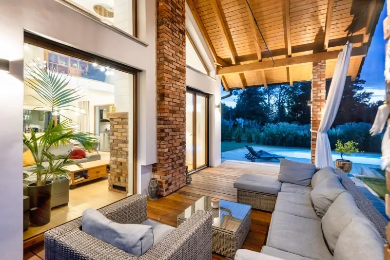 - Leave space for movement. Especially if you’re using folding or sliding doors, arrange furniture and paths so people can move freely between inside and out.