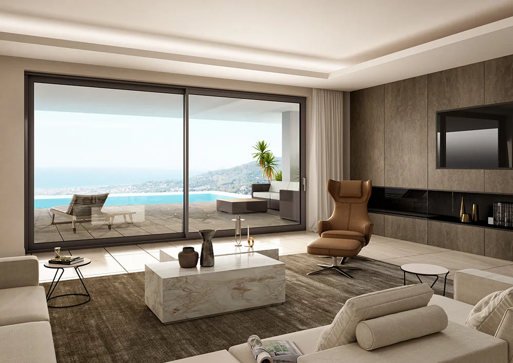 - robust and slender profiles enable the construction of low threshold doors up to 10ft 5.98 inch high and up to 10ft 9.92 in wide