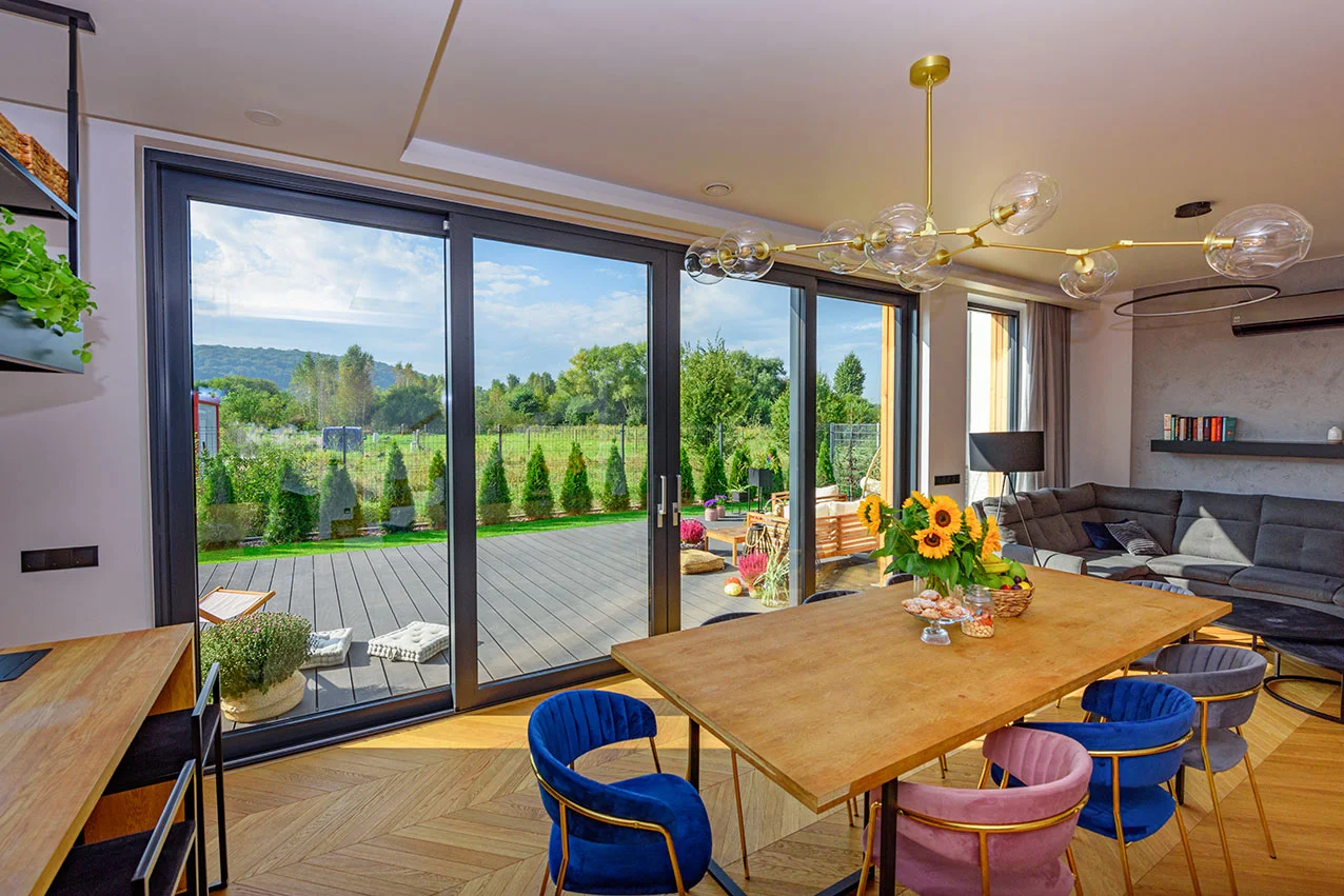 Sliding patio doors with an innovative mechanism ensure easy and intuitive operation. Stability and the ability to create large structures ensure a wide range of applications. With minimalist design you have the possibility to maximise the glazed surface to allow more natural light in the room.